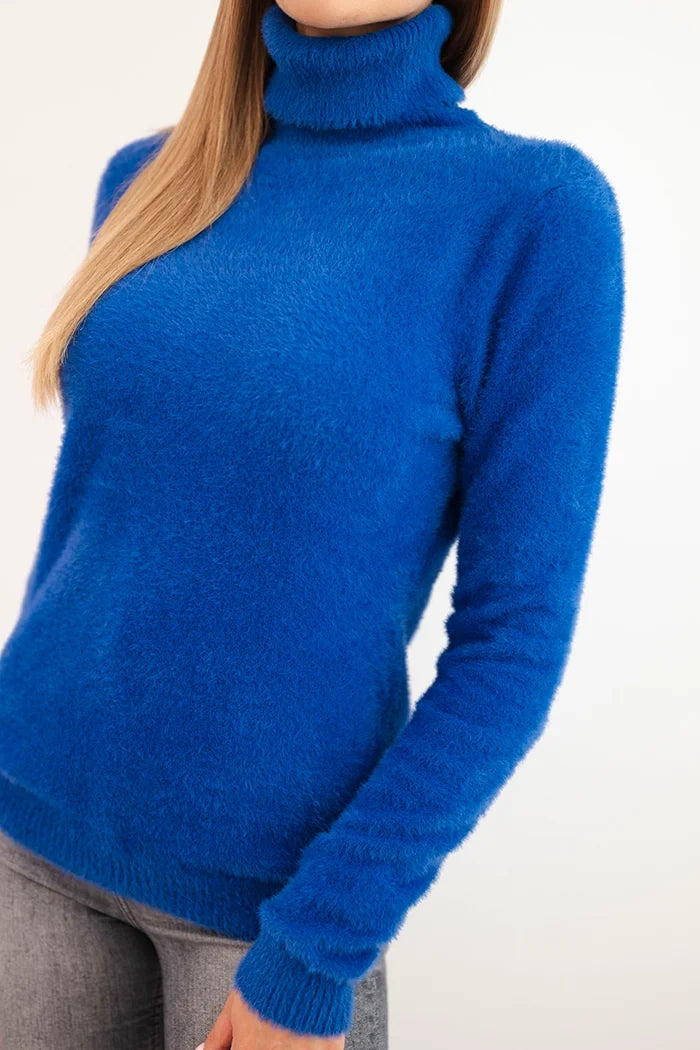 Sveter dámsky z alpaky s golierom chabrový univerzálne