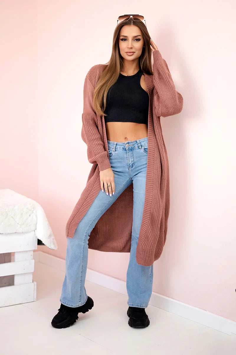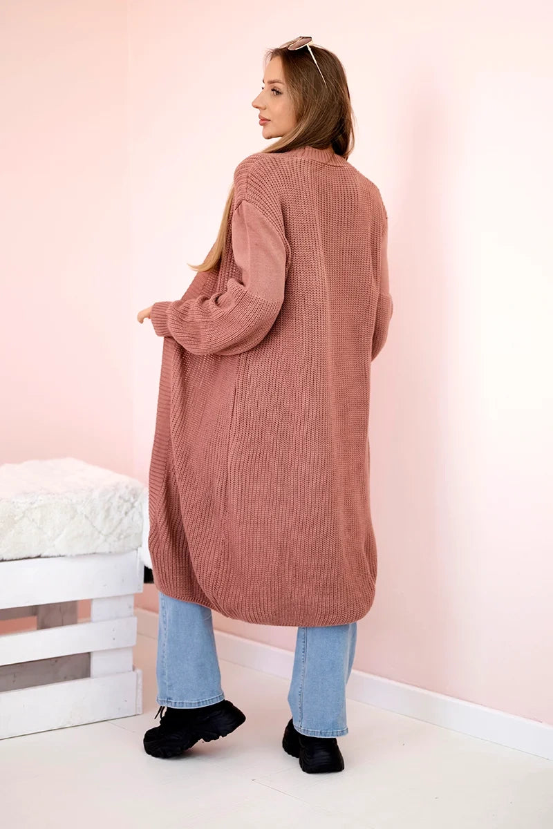 Sveter Kardigán s vreckam tmavo ružová univerzálne