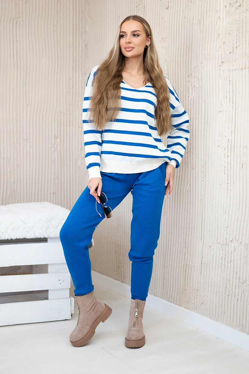 Svetrová súprava Pruhovaná mikina + Nohavice chrpa modrá univerzálne