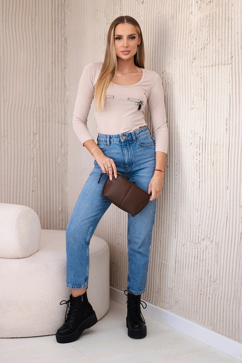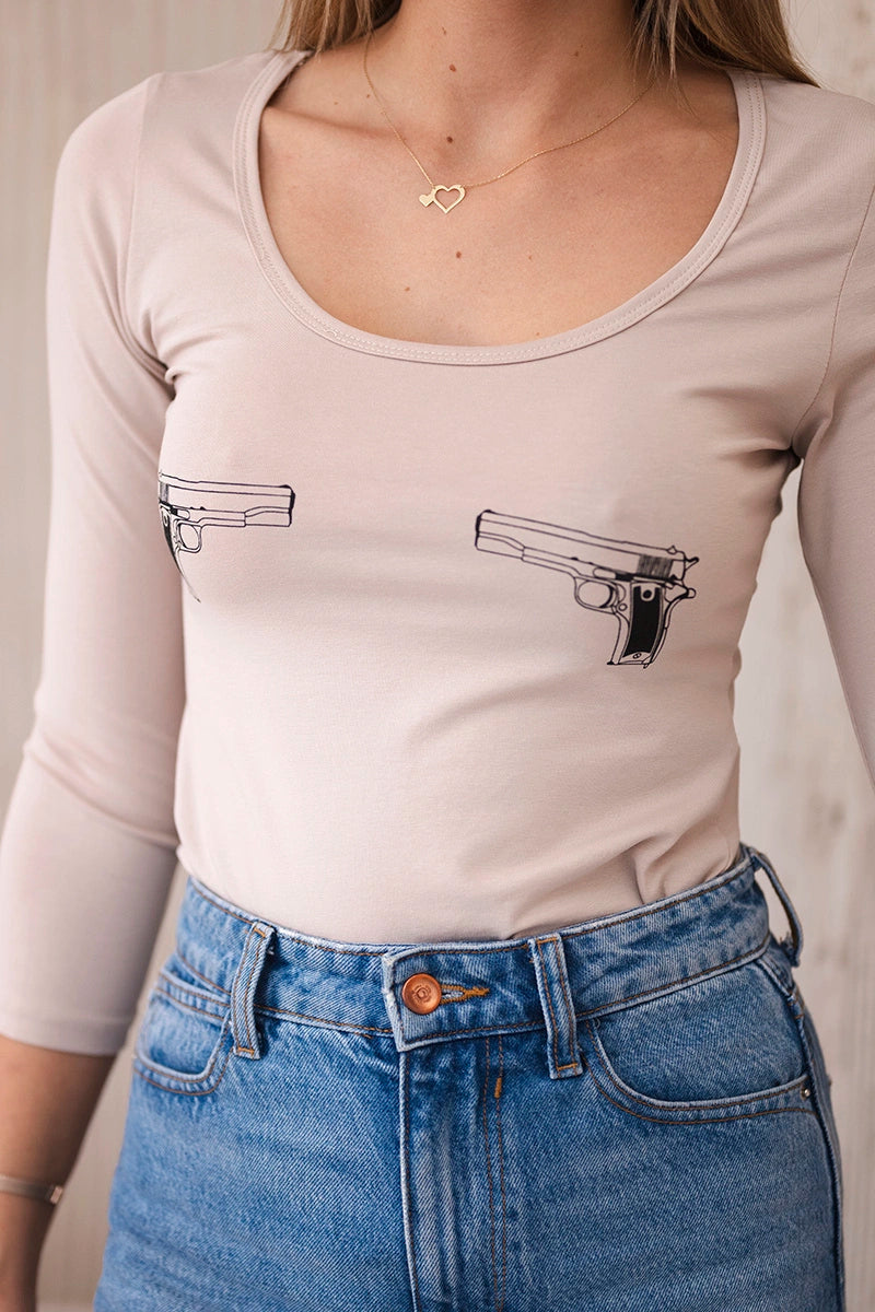 Telová blúzka s potlačou pištolí béžová univerzálne