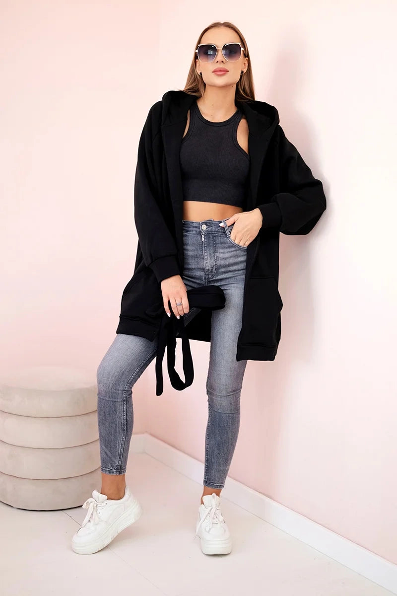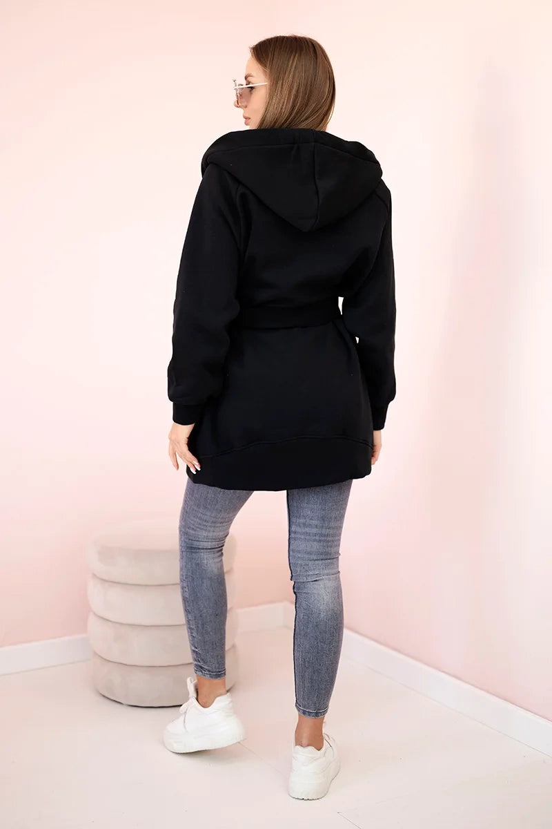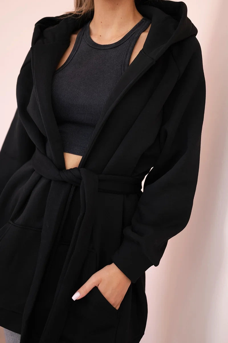Teplá pelerína so zaväzovaním v páse čierna univerzálne