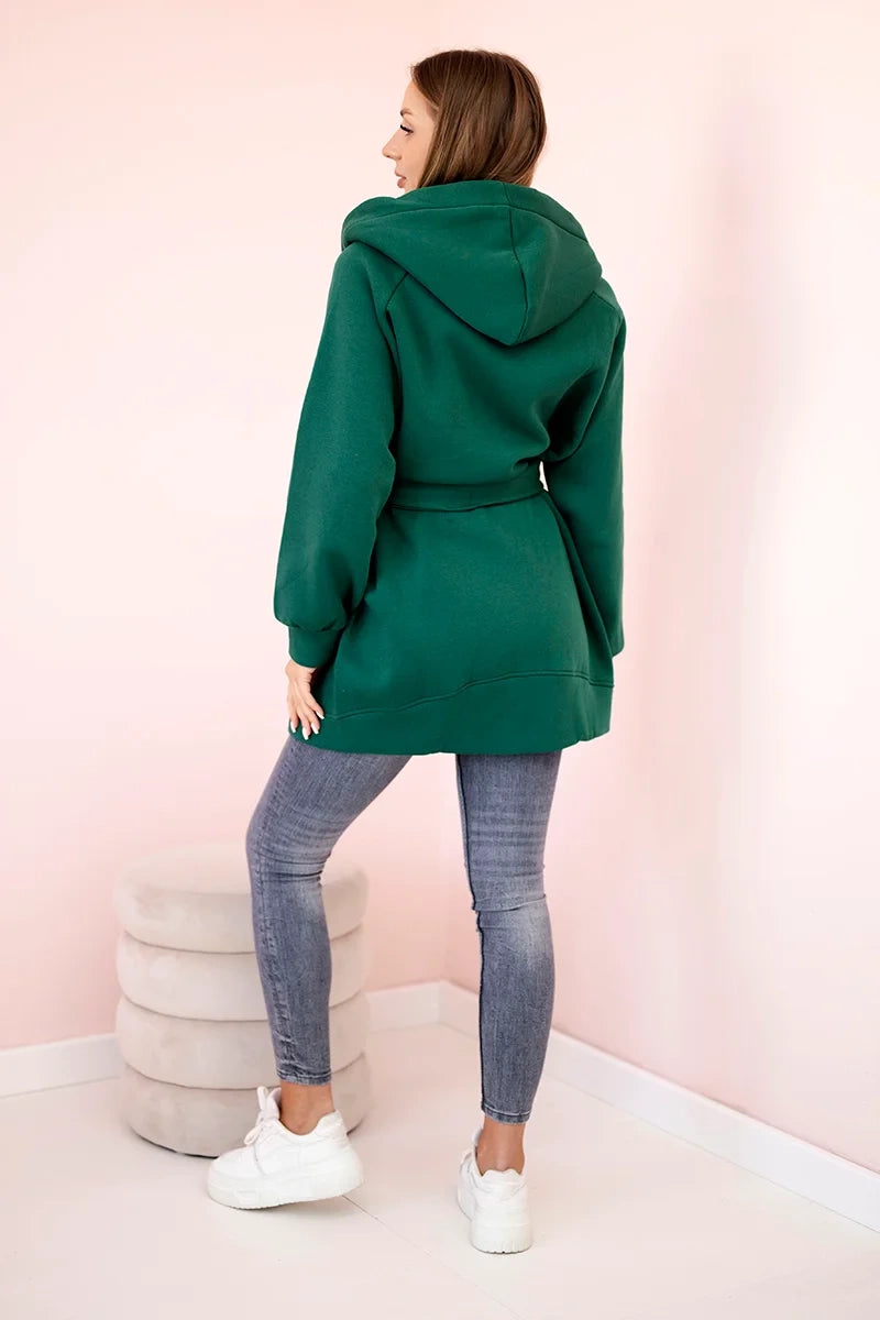 Teplá pelerína so zaväzovaním v páse tmavozelený univerzálne