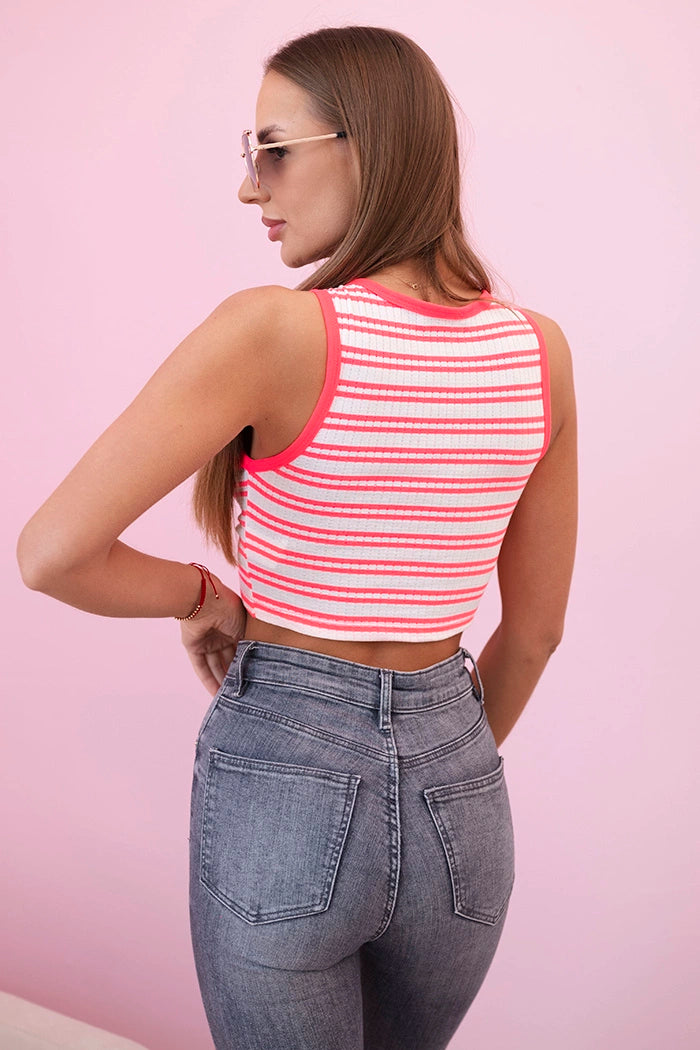 Top dámsky bavlnený s výstrihom a zlatým akcentom neonovo ružový univerzálne