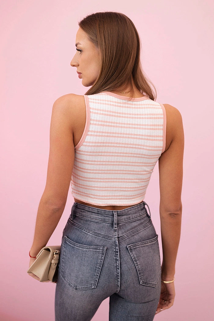 Top dámsky bavlnený s výstrihom a zlatým akcentom pudrová ružová univerzálne