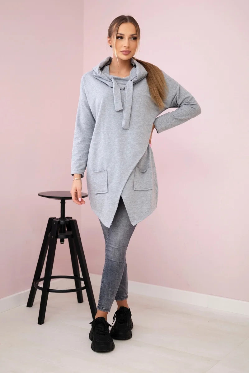 Tunika s prednou obálkou Oversize šedá univerzálne