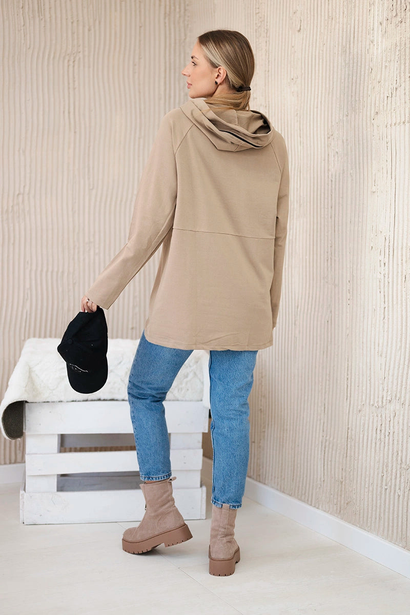 Tunika so zipsom na kapote Oversize farba ťavy univerzálne
