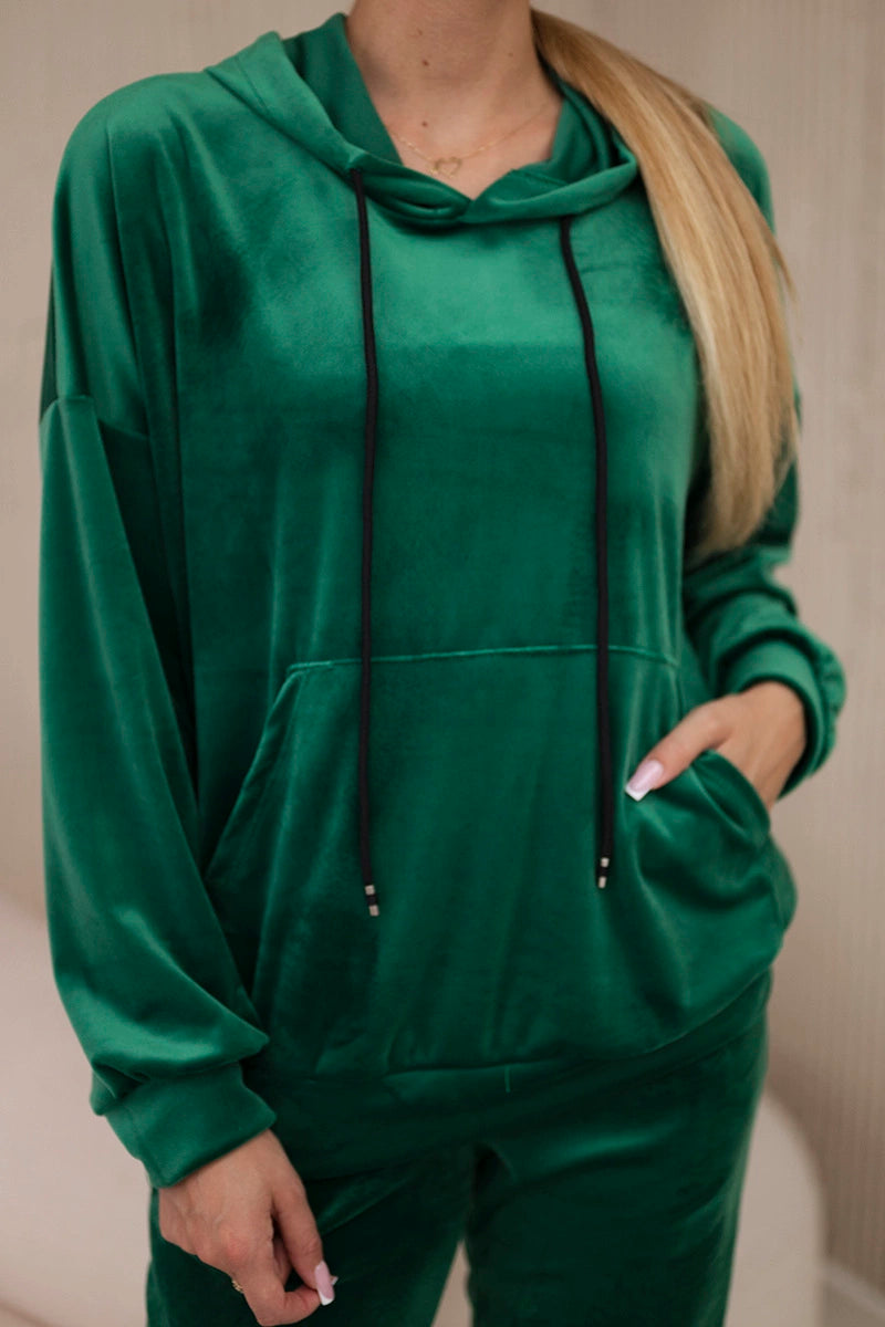 Velúrová súprava klokanie mikinové + nohavice jasne zelená univerzálne