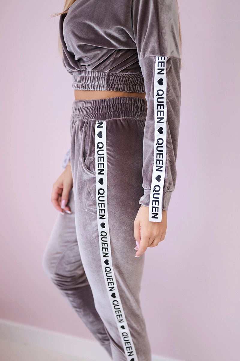 Velúrová súprava s nápisom Queen Šedá univerzálne