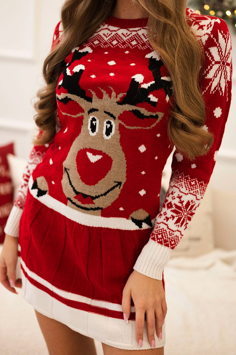 Vianočný set 1006 sveter + čiapka + podkolienky červená univerzálne