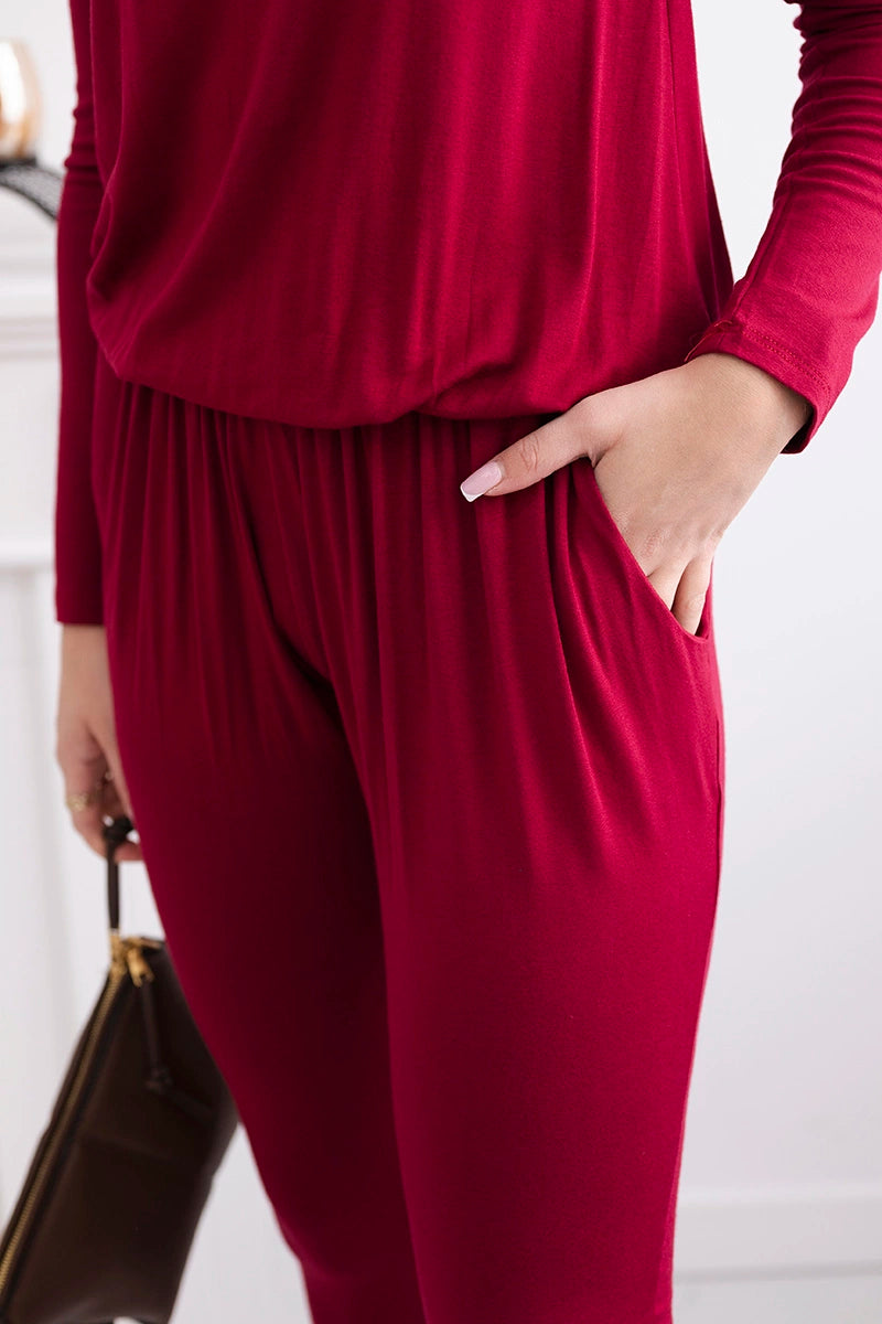 Viskózová kombinéza s pásom Burgundsko XXXL