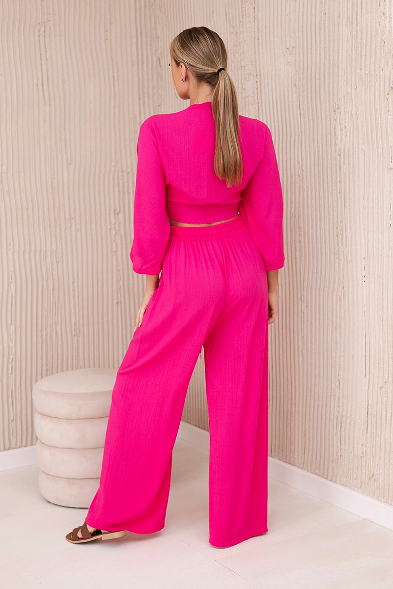 Viskózová súprava blúzka uviazaná v spodnej časti + nohavice ružový univerzálne