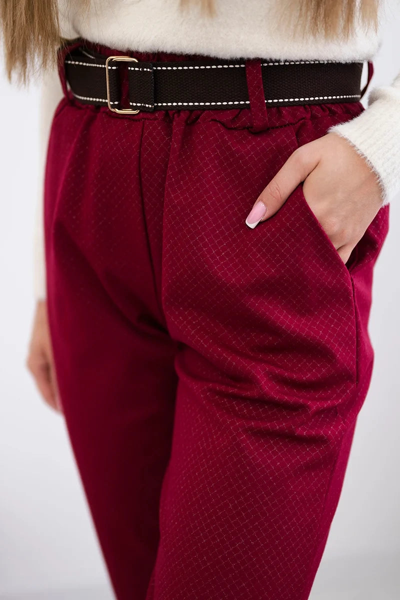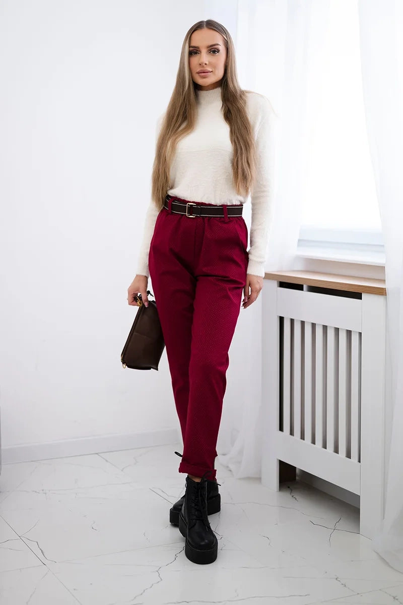 Viskózové nohavice s jemným vzorom Burgundsko univerzálne