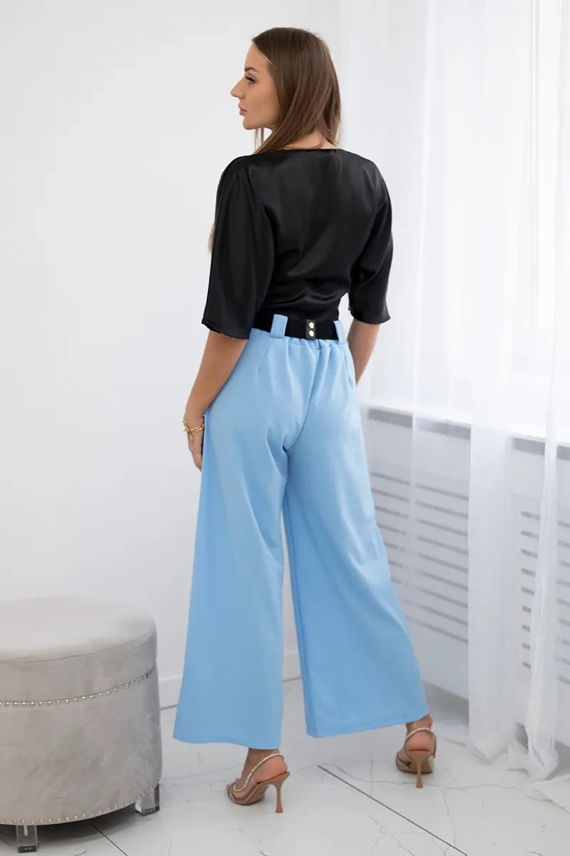Viskózové nohavice so širokými nohavicami modrý univerzálne