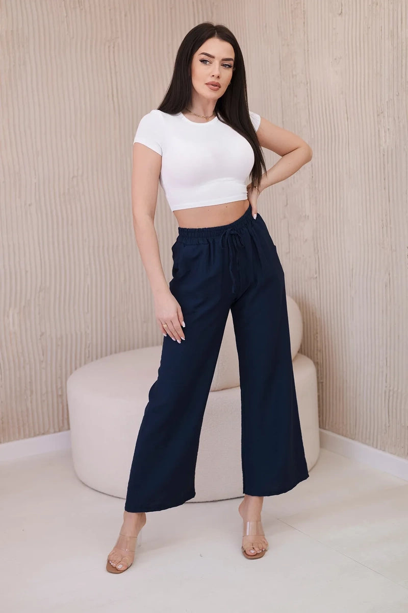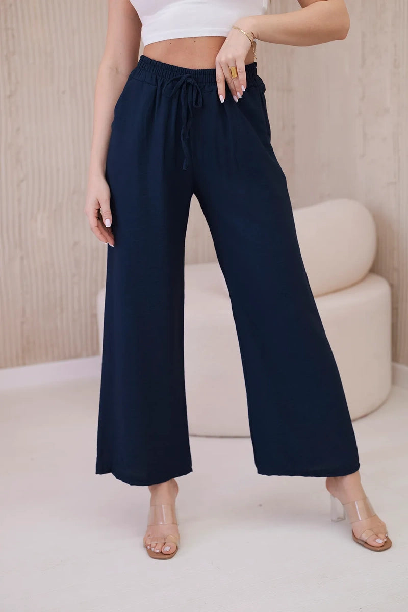 Viskózové široké nohavice Námornícka modrá univerzálne