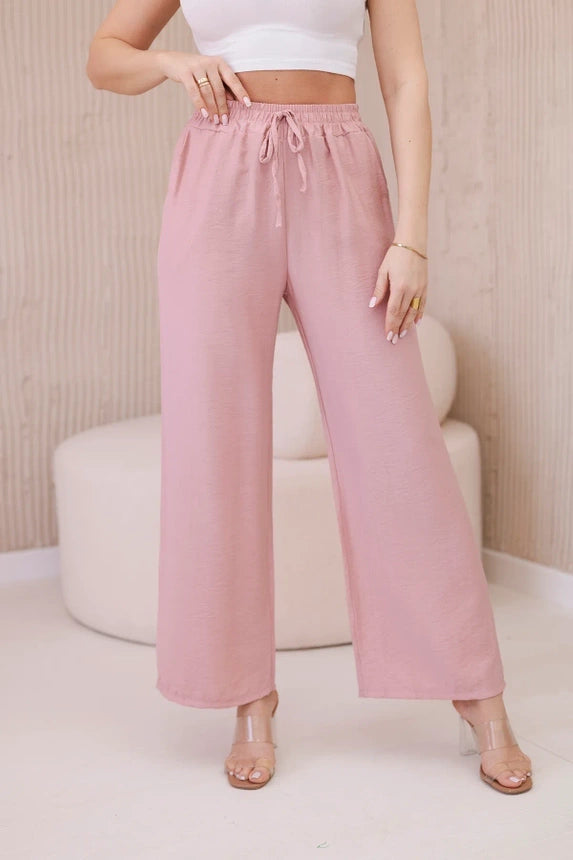 Viskózové široké nohavice tmavá púdrová ružová univerzálne