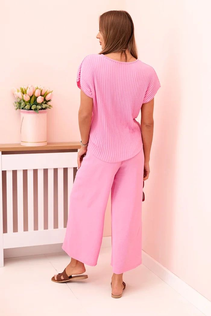 Viskózový komplet plisovaná blúzka + nohavice cukríková ružová univerzálne