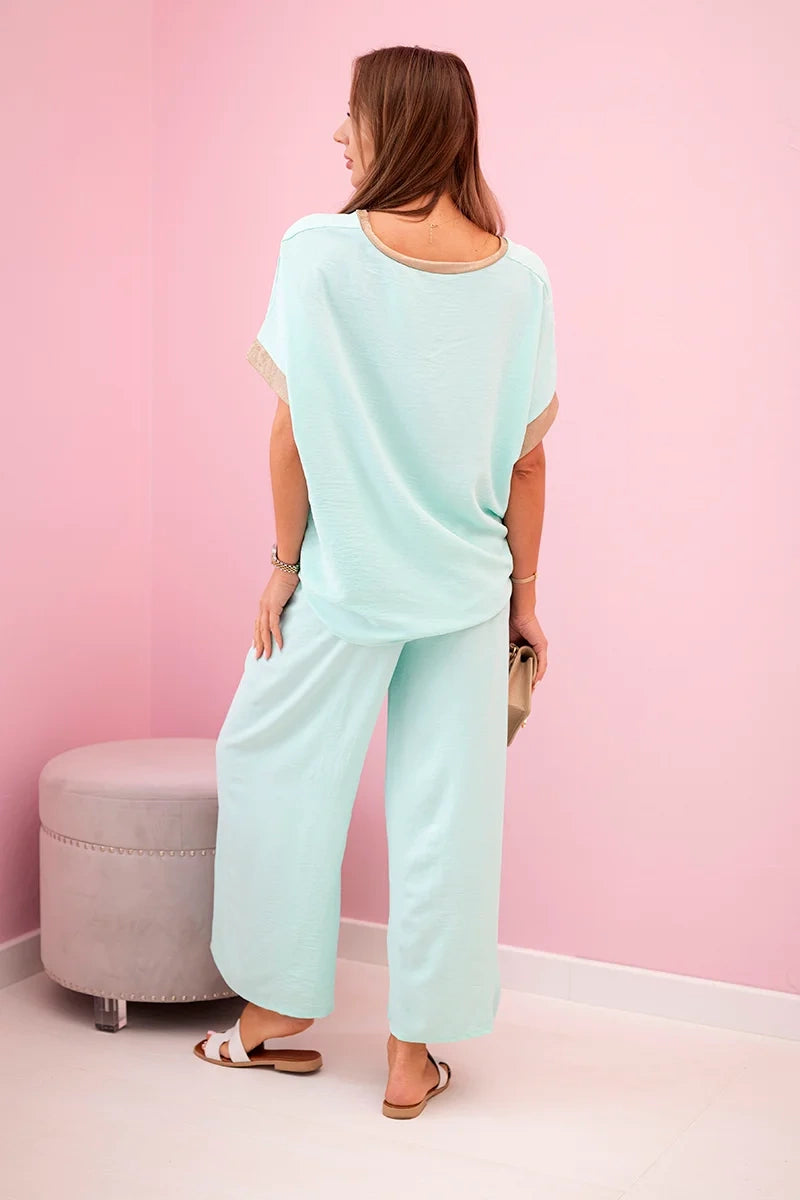Viskózový komplet so zlatým lemovaním mäta univerzálne