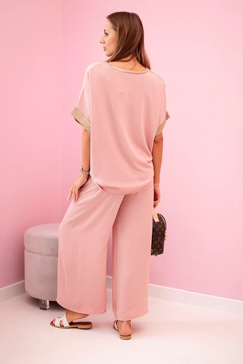 Viskózový komplet so zlatým lemovaním tmavá púdrová ružová univerzálne