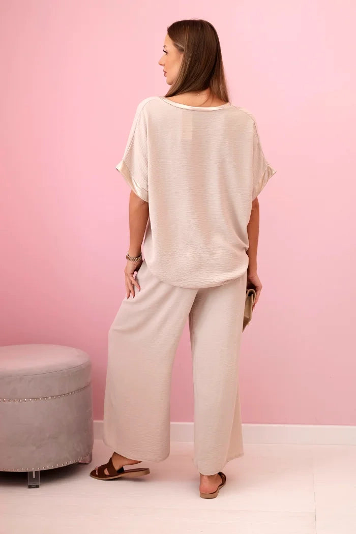 Viskózový komplet so zlatým lemovaním tmavo béžová univerzálne