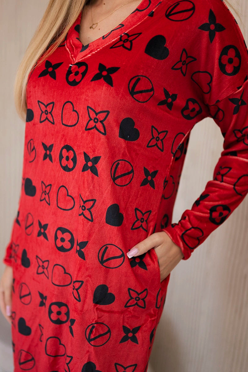 Zamatové šaty s dekoratívnym vzorom červený univerzálne