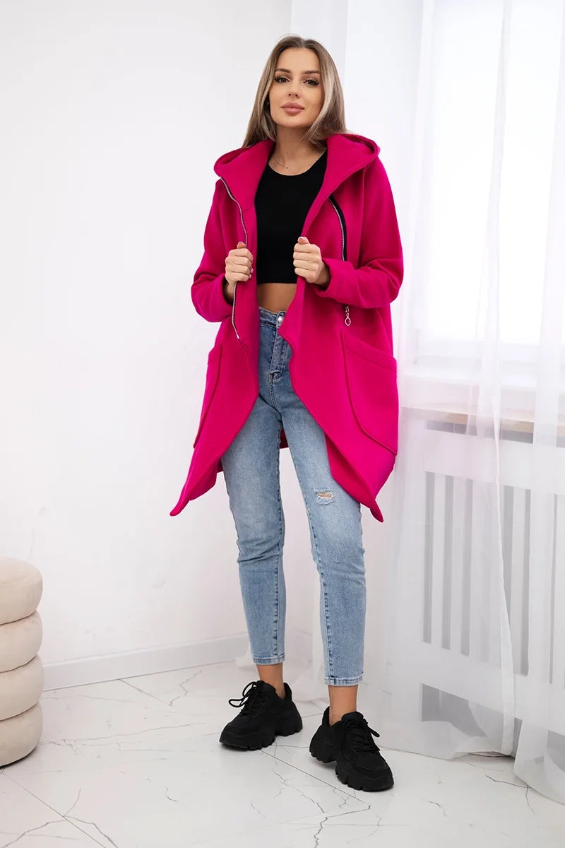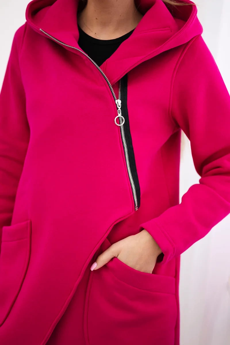 Zateplená mikina s asymetrickým zipsom fuchsiová univerzálne