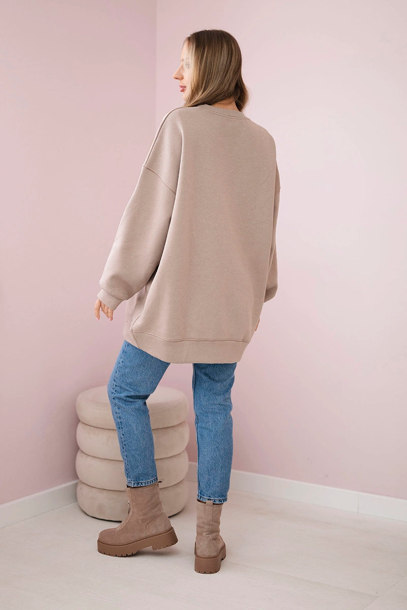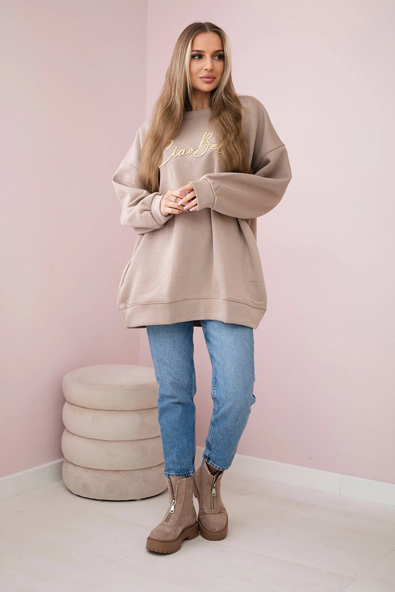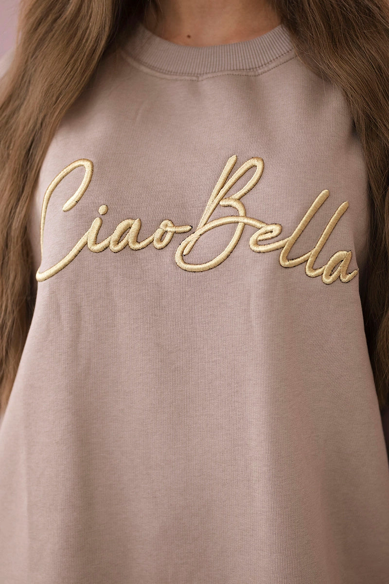 Zateplená mikina s Ciao Bella nápisom tmavo béžová univerzálne