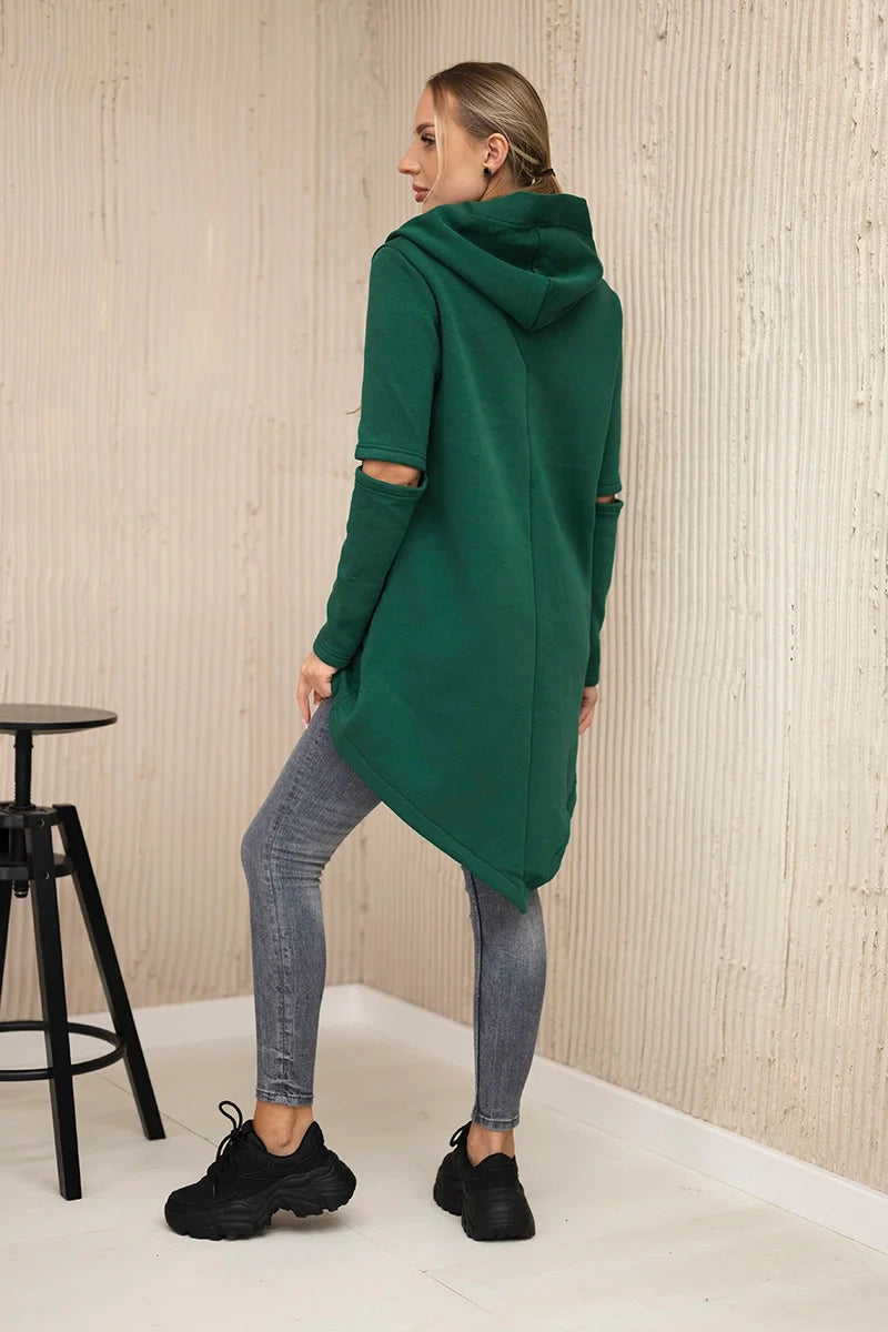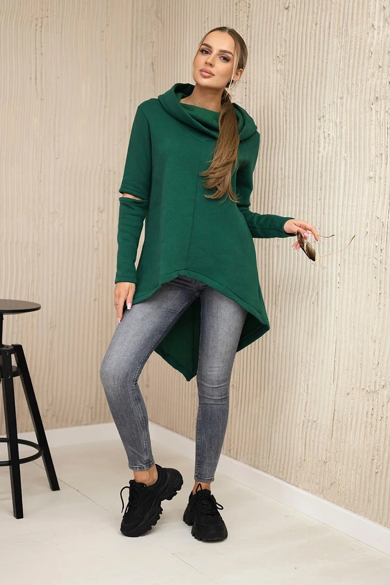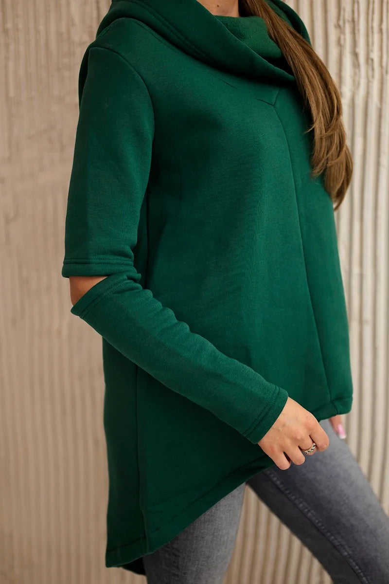 Zateplená mikina s dlhším chrbtom tmavozelený univerzálne