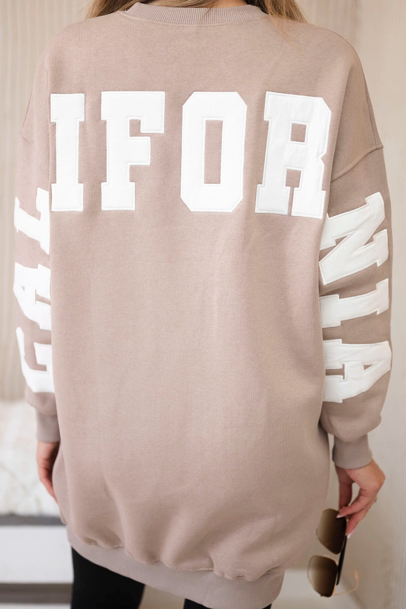 Zateplená mikina s kalifornským nápisom tmavo béžová univerzálne