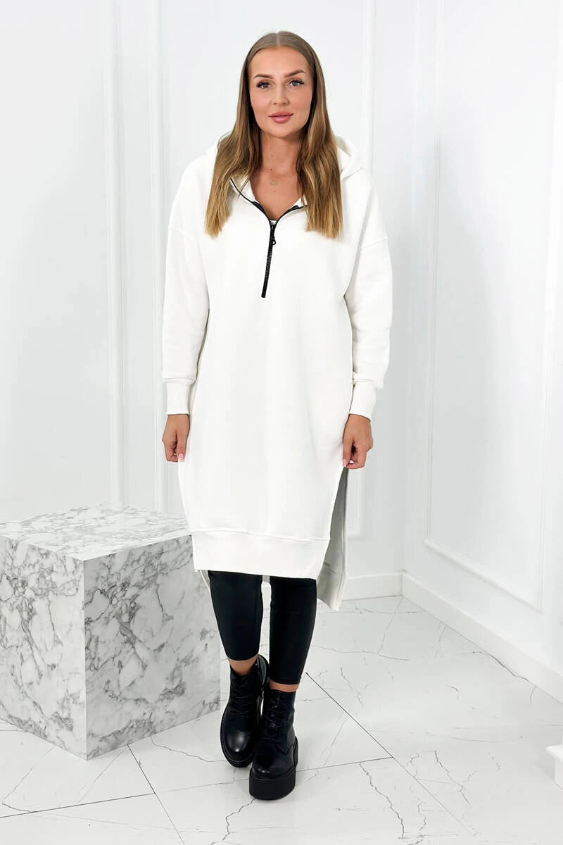 Zateplená mikina s rozparkami na bokoch ecru univerzálne