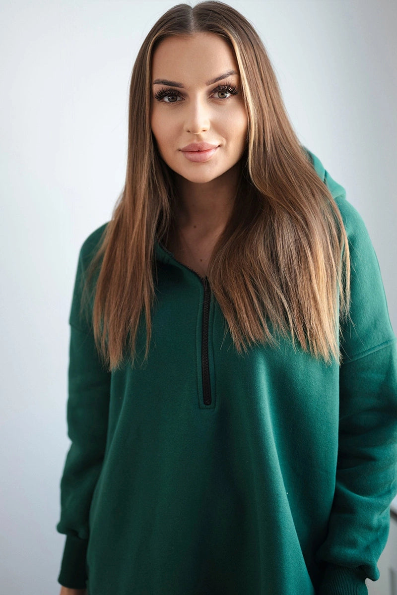 Zateplená mikina s rozparkami na bokoch tmavozelený univerzálne