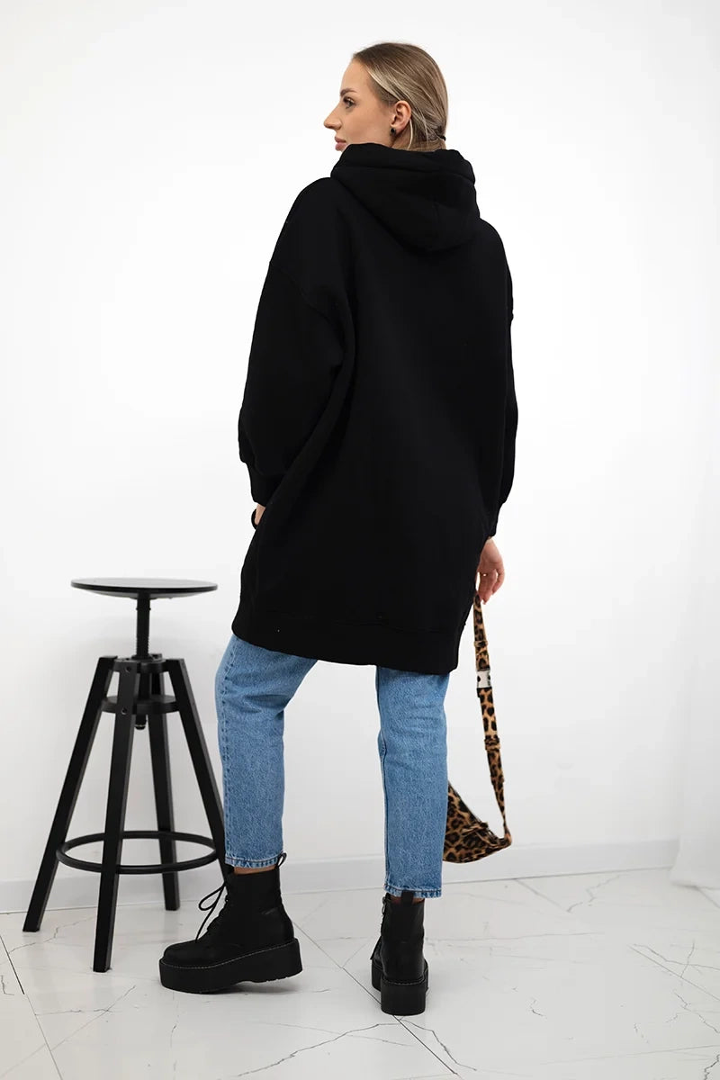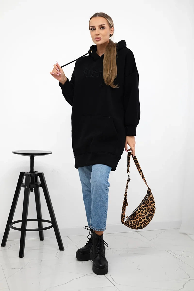 Zateplená mikina s vyšívaným nápisom oversize čierna univerzálne