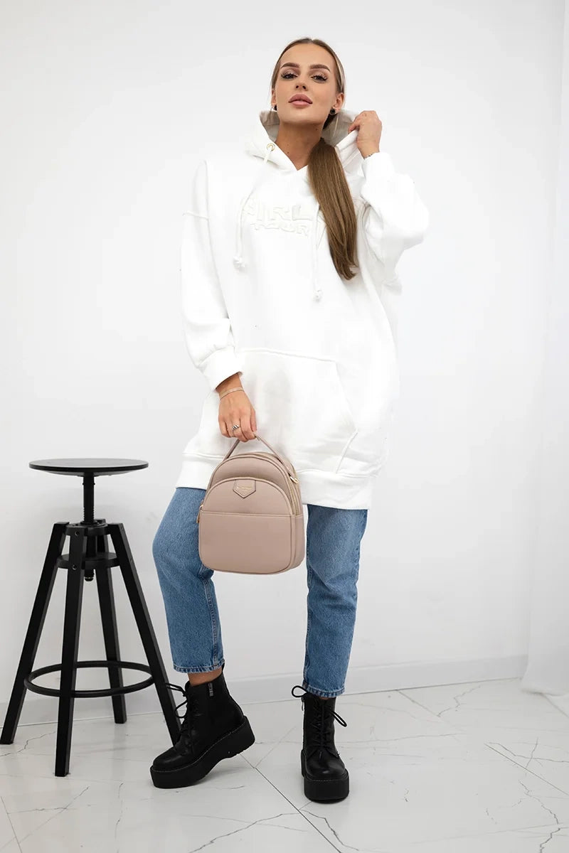 Zateplená mikina s vyšívaným nápisom oversize ecru univerzálne