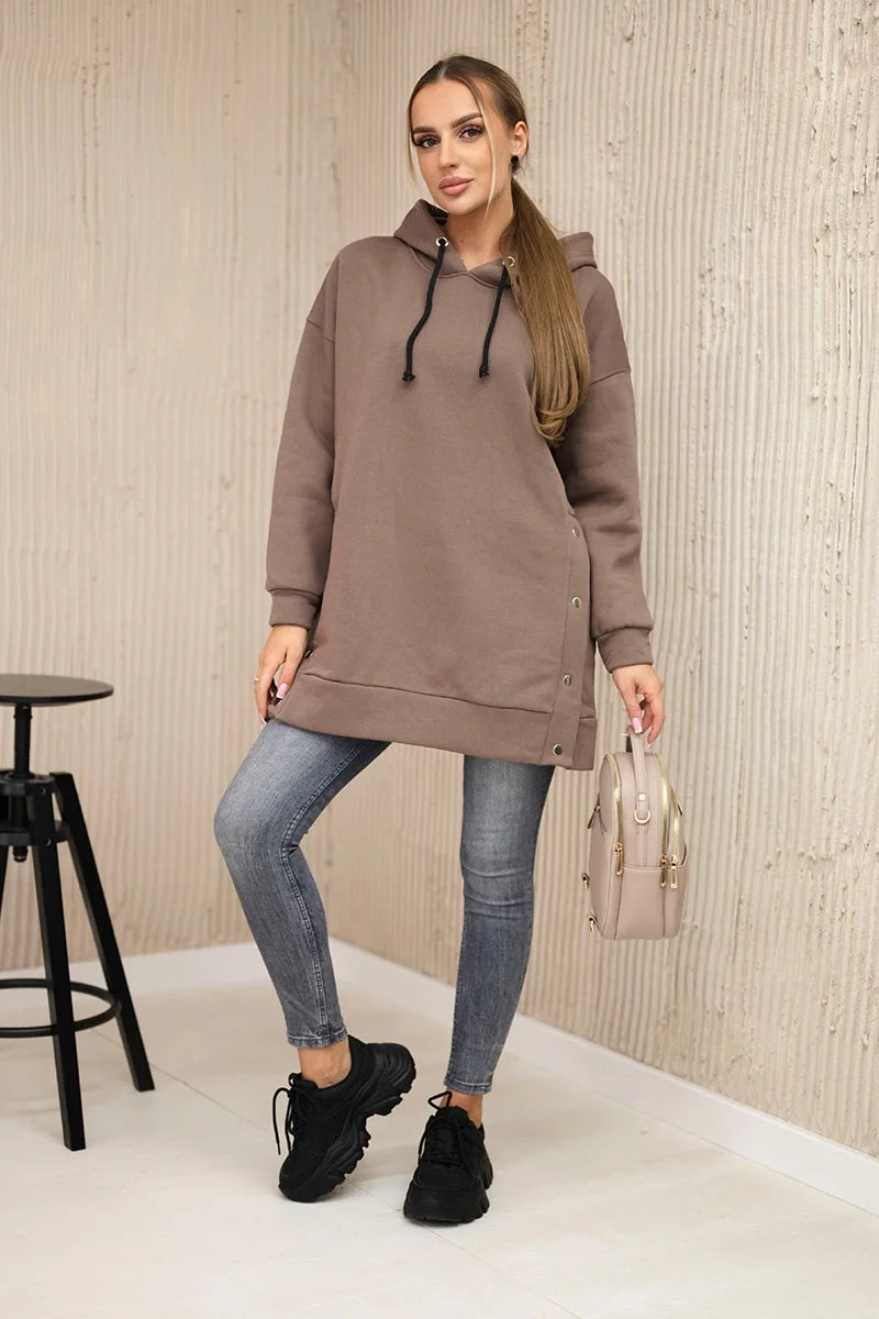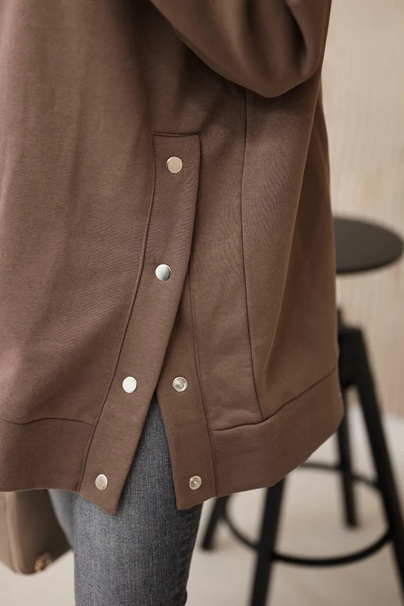 Zateplená mikina so zapínaním na patentky mocca univerzálne
