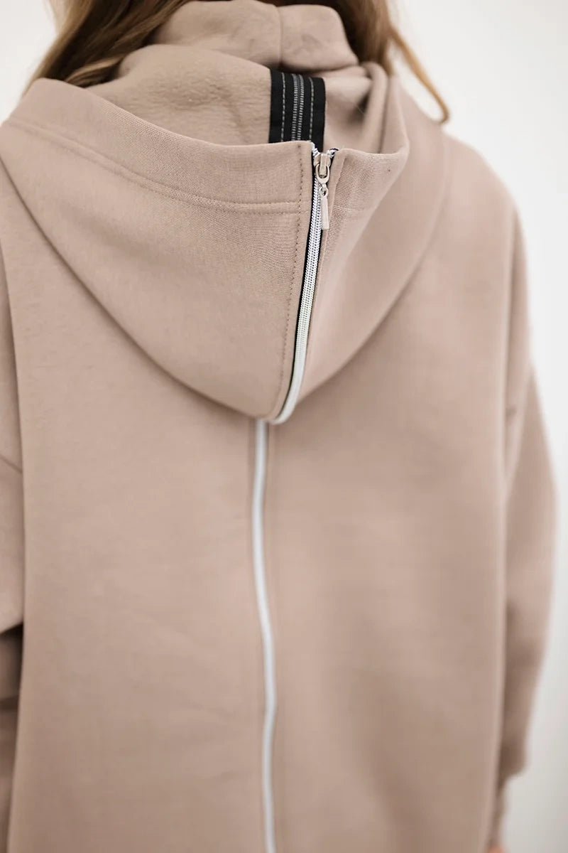 Zateplená mikina so zapínaním na zips vzadu tmavo béžová univerzálne