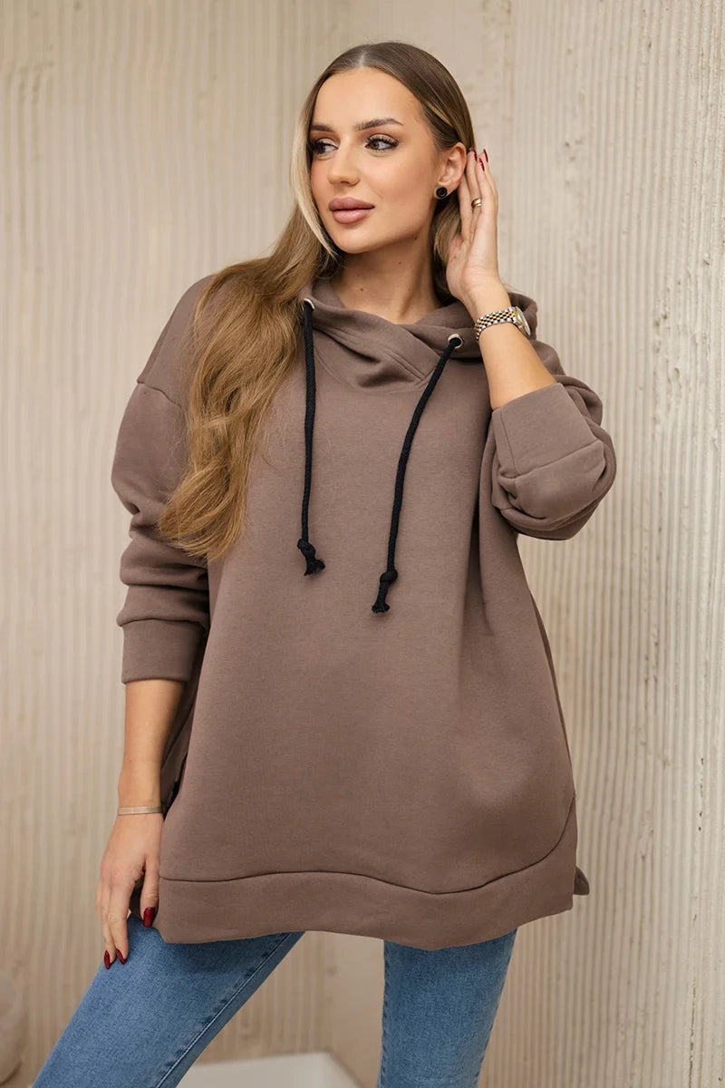 Zateplená mikina so zipsom na boku mocca univerzálne