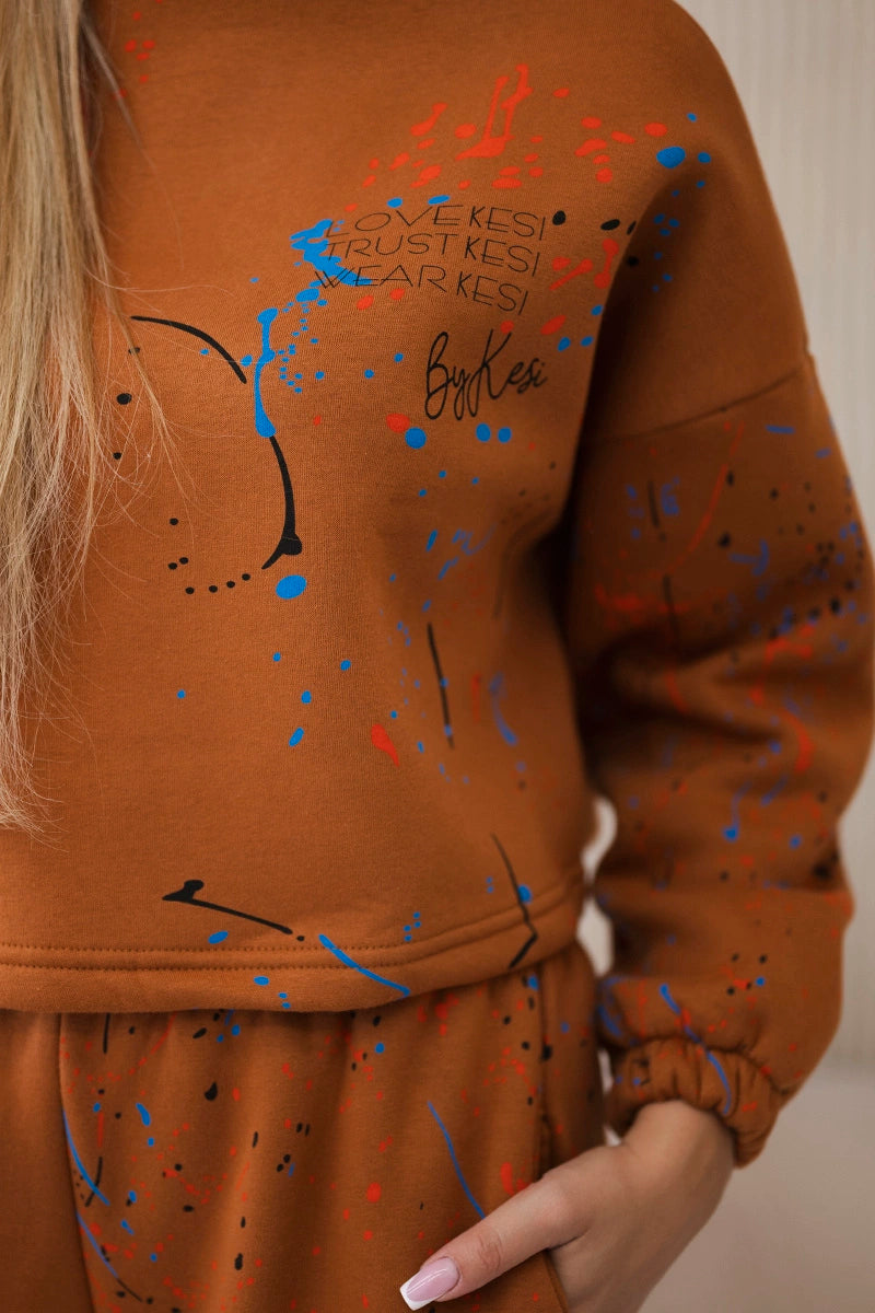 Zateplená súprava s farebnou potlačou ťavej farby univerzálne