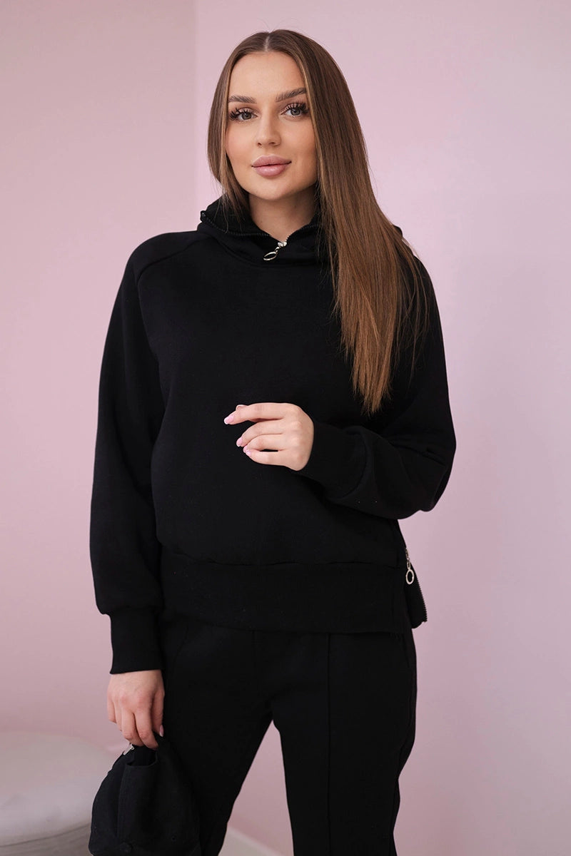 Zateplená súprava s rolákom a kapucňou čierna univerzálne