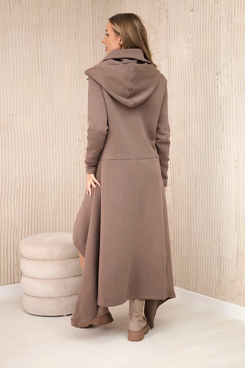 Zateplené šaty s dlhšími stranami mocca univerzálne