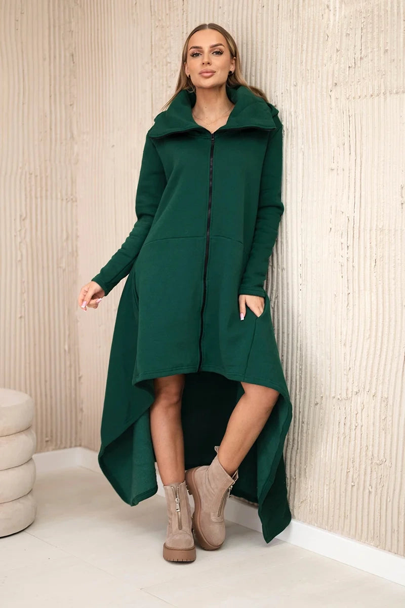 Zateplené šaty s dlhšími stranami tmavozelený univerzálne