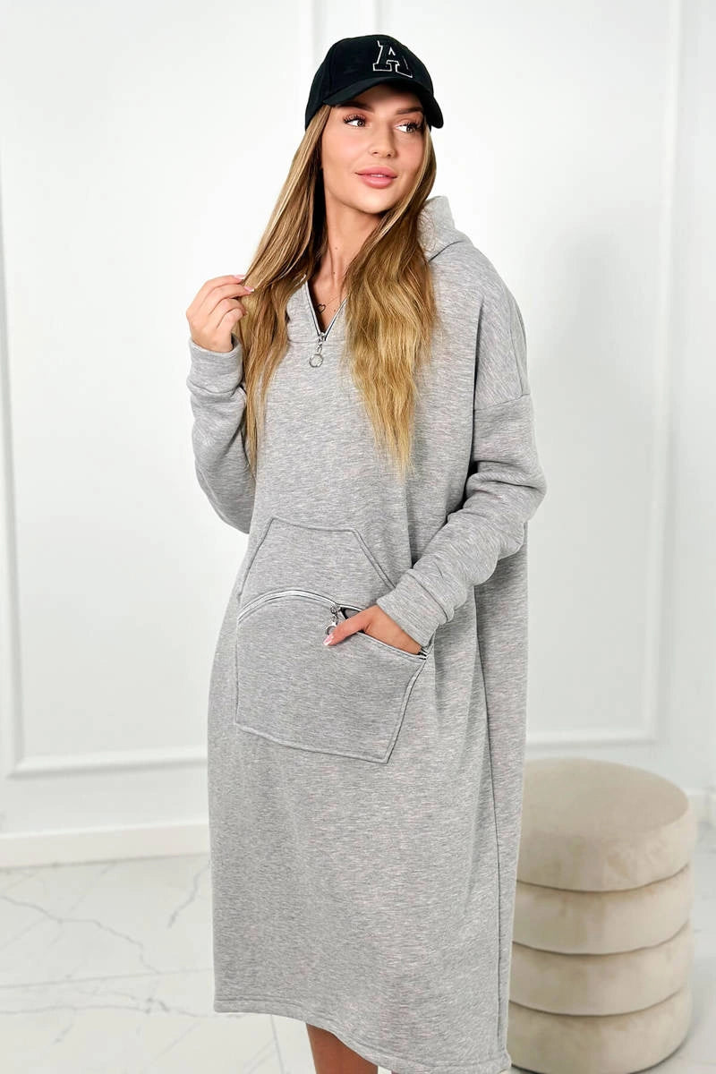 Zateplené šaty s kapucňou sivý univerzálne