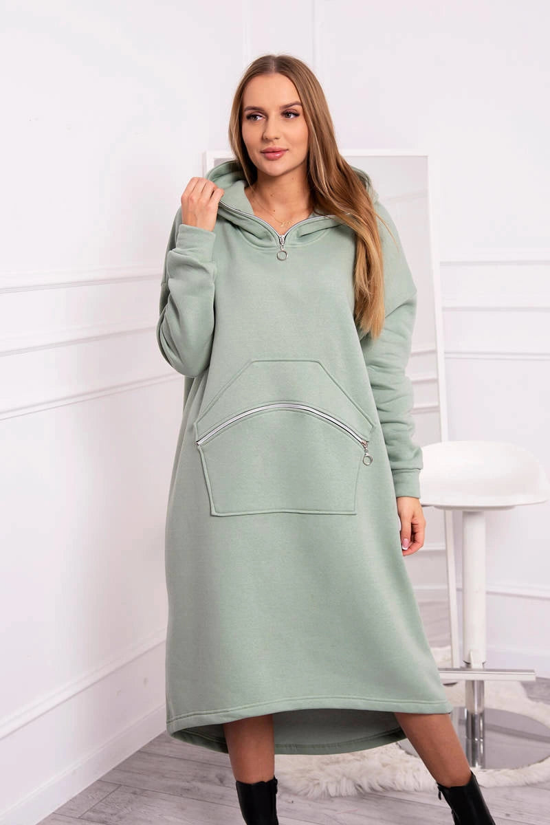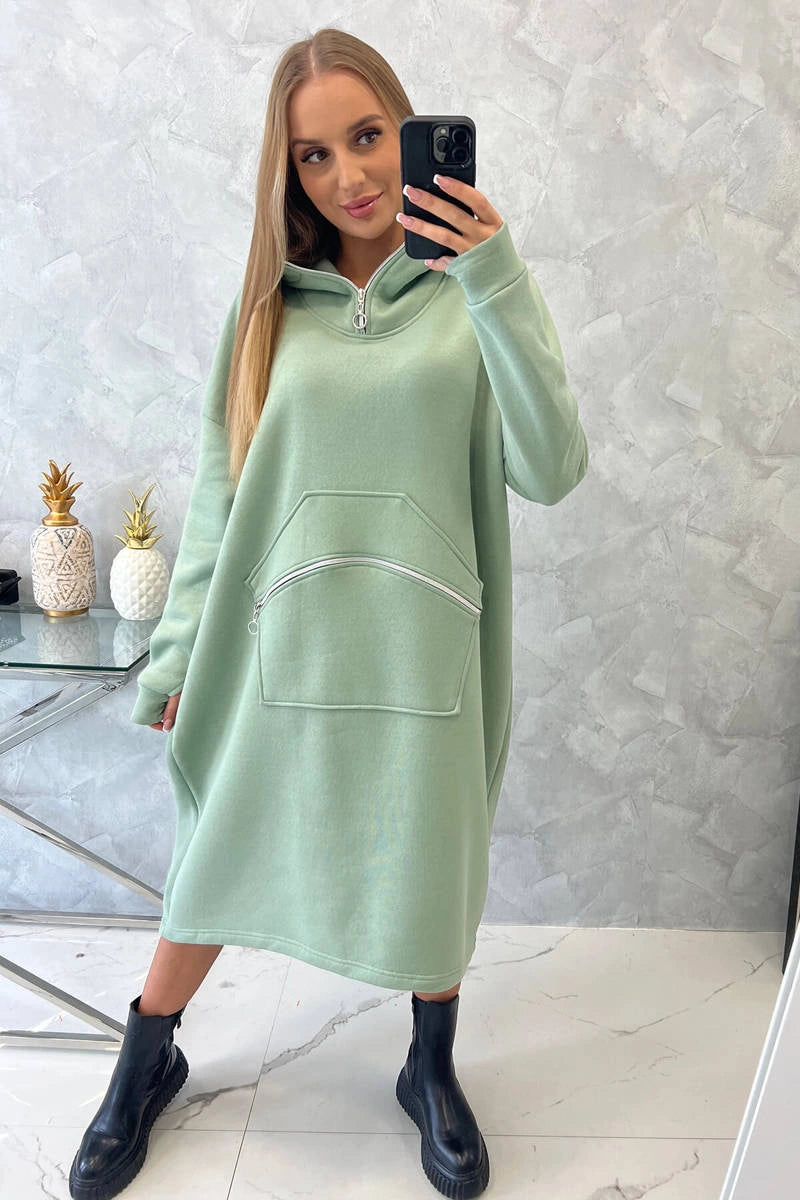 Zateplené šaty s kapucňou tmavá mäta univerzálne