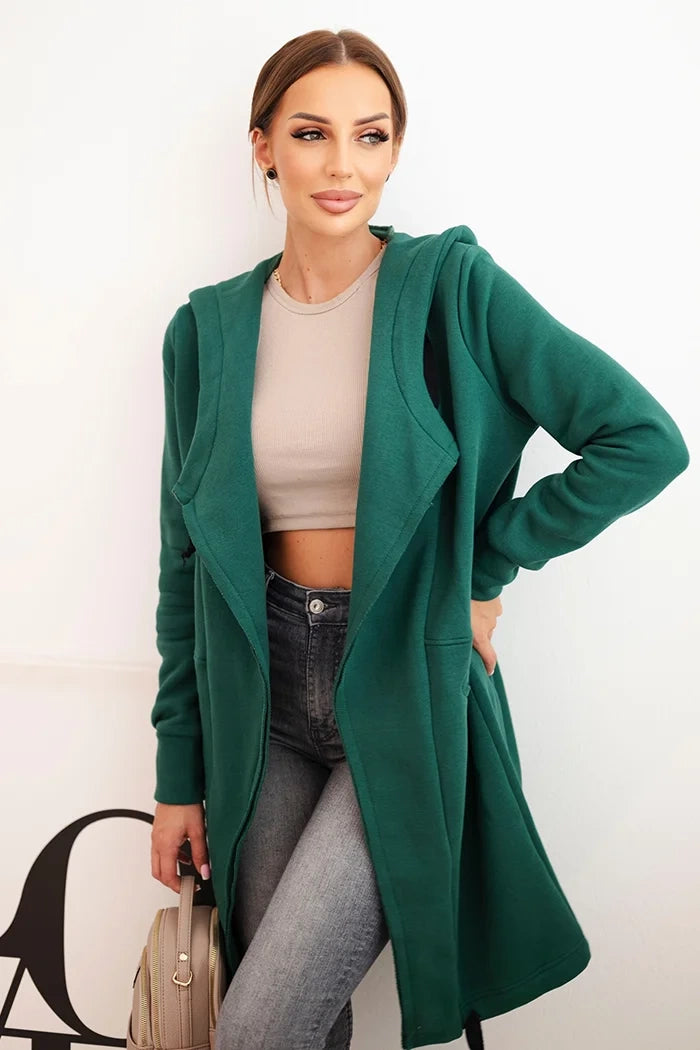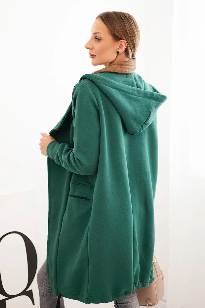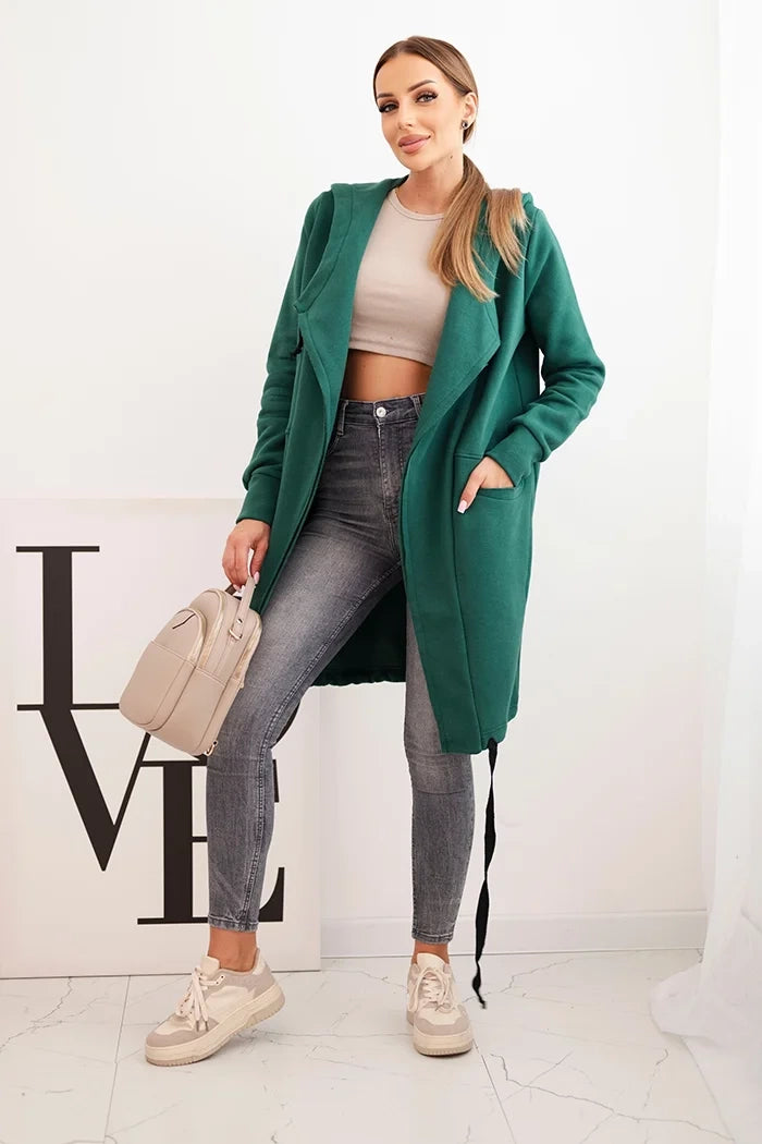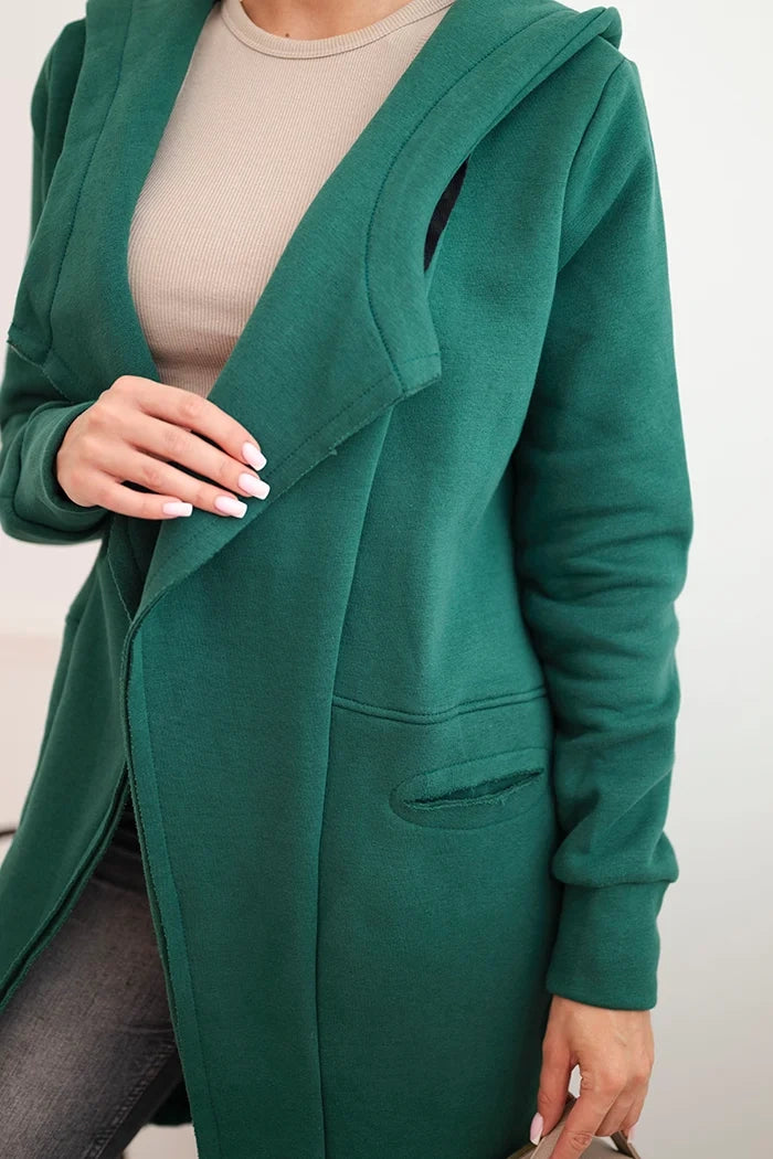 Zateplený plášť s kapucňou tmavozelený univerzálne